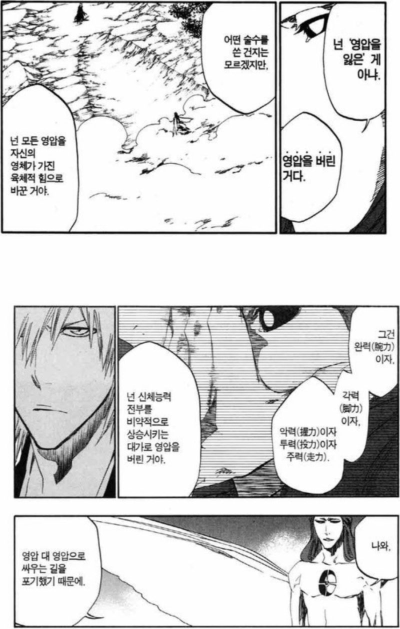 블리치는 파괴 스케일 묘사가 제멋대로에 "A가 B보다 세다." 같은 언급도 그리 많지 않고(원작), 이능 싸움이 많다보니 순위 정하는 게 복잡함