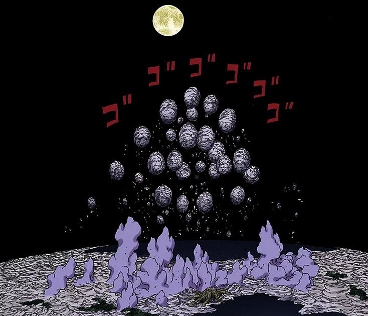 무츠와 신 수계강탄으로 붙잡은 생명체들의 차크라를 전부 흡수해서 만드는 팽구 = 세계 파괴(나루토에서 세계가 보통 지구를 의미했으니 지구형 행성 파괴급일듯)