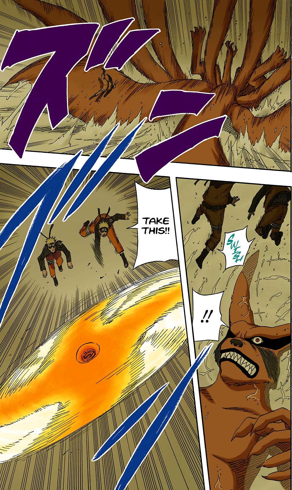 멘마의 나선 시리즈인 나선링은 선나의 풍둔 나선수리검을 상쇄할 정도의 위력을 가지고 있음